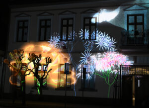 Zwieńczeniem wieczoru był mapping artystyczny tematycznie związany z trwającą obecnie w IMO Galerii wystawą „Emocje, poczucia, stany”. Mapping, a został wykonany przez Natalię Ślusarską oraz Zuzannę Gocławską. Na kamienicy nr 5 w rynku ich prezentacja, świetlnych obrazów została pokazana publiczności, która gorąco oklaskiwała artystki.