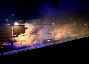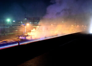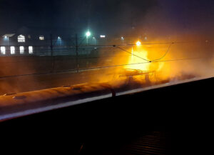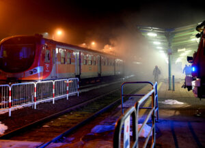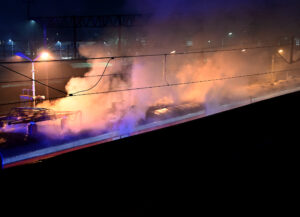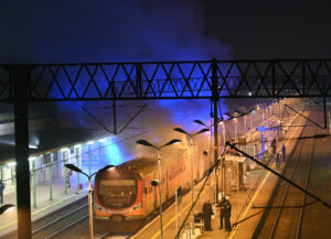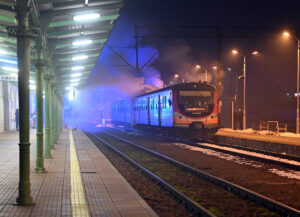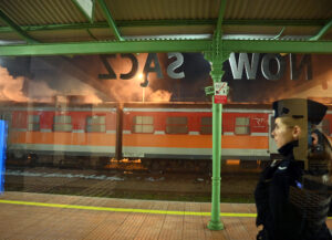 Na dworcu PKP w Nowym Sączu ok. godz.. 19 doszło do zapalenia się (?) pociągu pasażerskiego. Na miejsce wezwano wiele jednostek straży pożarnej. Dworzec zabezpieczali policjanci, którzy legitymowali ludzi w związku z akcją “Tor”. Wagony pociągu przez wiele minut paliły się wydzielając bardzo nieprzyjemny odór palonego plastiku oraz duże ilości dymu. Jakie były przyczyny pożaru ustalą specjaliści.
