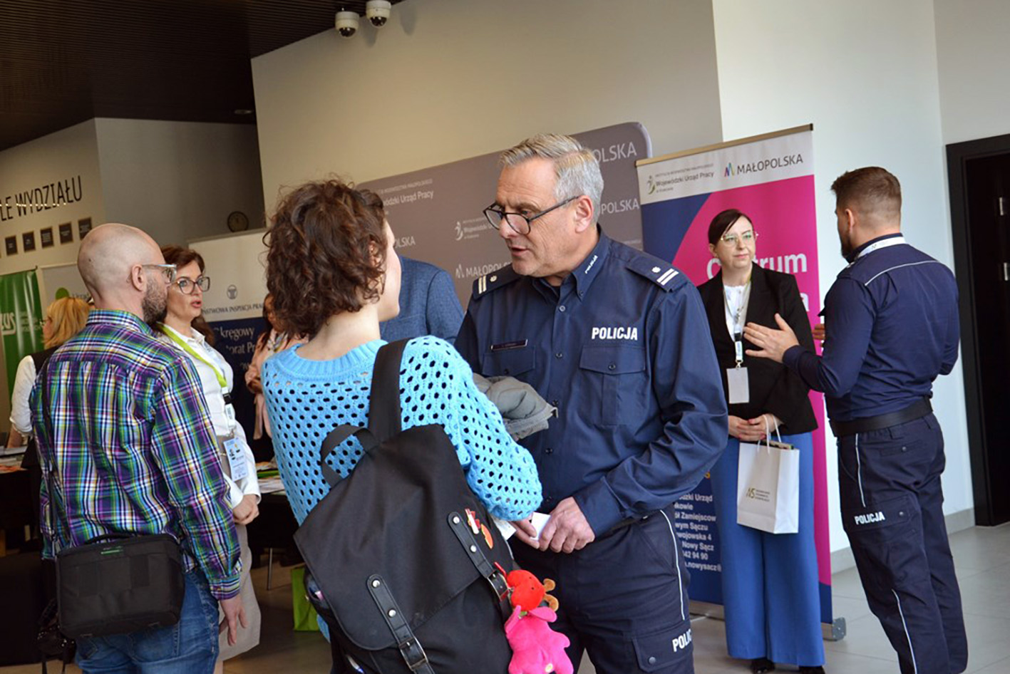 podinsp. L. Górski rozmawia z uczestniczką wydarzenia