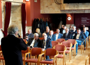 Przedstawiciel Urzędu Marszałkowskiego Województwa Małopolskiego, zastępca Dyrektora Departamentu Nadzoru Właścicielskiego i Gospodarki Jerzy Kopeć, zaprezentował zagadnienia dotyczące roli platform specjalizacyjnych PPO w rozwoju województwa. Natomiast konsultant w Lokalnym Punkcie Informacyjnym Funduszy Europejskich w Nowym Sączu Tomasz Basta, omówił dostępne możliwości wsparcia dla przedsiębiorców, w tym zakres finansowania, zasady ubiegania się o środki unijne oraz instrumenty związane z poprawą efektywności energetycznej.