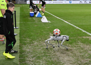 Kibice, którzy znów bardzo licznie przybyli na stadion, zostali zaskoczeni. Piłkę do gry nie wniósł młody piłkarz, a elektroniczny pies skonstruowany przez studentów Akademii Nauk Stosowanych w Nowym Sączu, która była też sponsorem meczu..