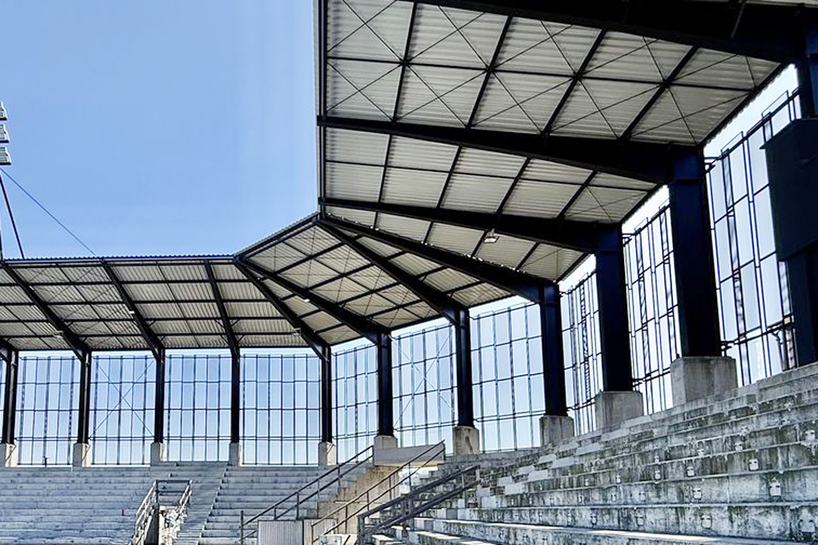 zadaszone trybuny (wygląd, materiał to kwestia gustu) , a krzesełka gdzie?