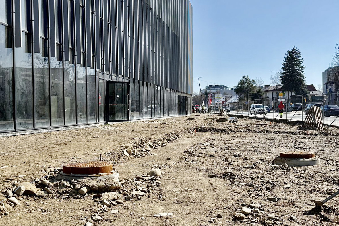 Zmienia się także przestrzeń wokół stadionu. Przed budynkiem A wzdłuż ulicy Kilińskiego zostało wykonane korytowanie, a na przygotowanej przestrzeni w przyszłym tygodniu będzie układana kostka brukowa.