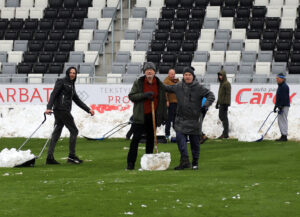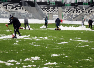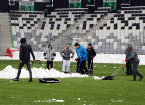 Jak pokazuje życie na kibiców, na których często się narzeka znów pokazali klasę! Mowa o kibiców Sandecji, którzy gdy przyszła chwila by pomóc, by mecz mógł się odbyć stanęli na wysokości zadania. Kiedy śnieg zasypał murawę wczoraj złapali za łopaty i odśnieżyli boisko. Pokazała się zielona trawa. Niestety aura okazała się nieprzychylna znów murawa się zabieliła.