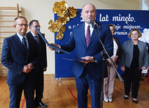 Starosta nowosądecki Tadeusz Zaremba uczestniczył w obchodach 120-lecia Szkoły Podstawowej im. bł. s. Celestyny Faron w Zabrzeży. Z okazji jubileuszu uhonorował Złotymi i Srebrnymi Jabłkami Sądeckimi osoby, które wniosły szczególny wkład w działania na rzecz rozwoju szkoły i dbania o patriotyczne wychowanie młodych pokoleń Polaków. Towarzyszył mu radny powiatowy Jacek Kwit, absolwent zabrzeskiej szkoły.