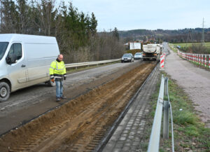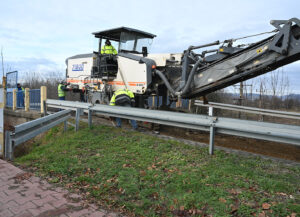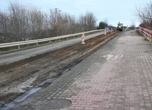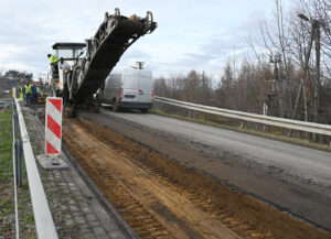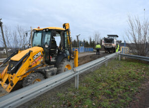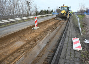 O remoncie tego fragmentu drogi mówiono od dawna. Niedość, że przejazd to taka mała hopka, to jeszcze z obu stron nawierzchnia była bardzo rozjeżdżona. Prace mają potrwać ok. tygodnia, ale już teraz widać, że ludzie i maszyny robią swoje.