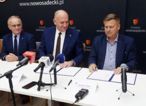 Starosta nowosądecki Tadeusz Zaremba podpisał z prezesem Zarządu firmy ZIBUD Grzegorzem Zającem umowę na przebudowę drogi powiatowej nr 1583 Obwodnica Zachodnia Nowego Sącza. Inwestycja ma zostać zrealizowana do maja 2027 r., a największy zakres prac przewidziano na II i III kwartał 2026 roku.