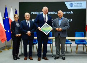 Umowę z wojewodą małopolskim Krzysztofem Janem Klęczarem podpisali starosta nowosądecki Tadeusz Zaremba, wicestarosta Antoni Koszyk i skarbnik Powiatu Nowosądeckiego Elżbieta Chmura.