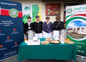 Po zakończeniu uroczystego tańca na wszystkich uczestników czekał poczęstunek – domowy bigos oraz słodkie wypieki przygotowane przez uczniów Zespołu Szkół im. św. Kingi. Była to doskonała okazja do wspólnych rozmów i integracji całej społeczności.