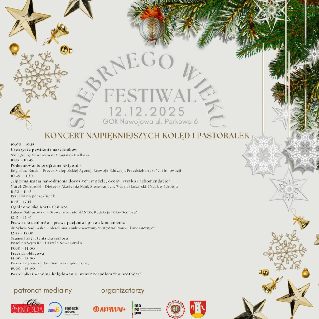 Już w najbliższy piątek (12.12.2025) odbędzie się wyjątkowe wydarzenie – Festiwal Srebrnego Wieku, organizowany przez Małopolska Agencja Rozwoju Edukacji Przedsiębiorczości